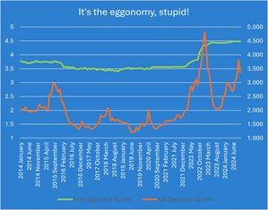 Over the same three-year period, Central Statistics Office data indicate that the average price of a dozen eggs increased in Ireland by 25.8% (from €3.56 to €4.48). Incidentally, Eurostat data show that the average increase in egg prices across the Euro area over the past three years was 28.9% while, in the UK, egg prices increased by 45.6%.