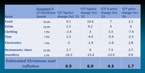 - We estimate ‘Christmas cost inflation’ will be markedly lower in 2024 than in recent years.