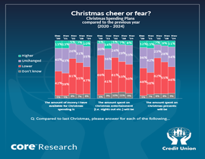 As usual, the Credit Union Consumer Sentiment Survey (in partnership with Core Research) included a couple of supplementary questions on topics of current interest. As we have done regularly at this time in recent years, this month’s special questions focussed on planned Christmas spend.